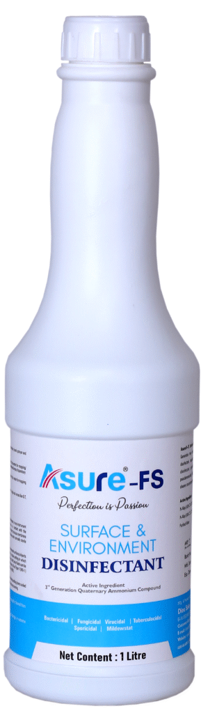 Asure®-FS is a broad spectrum terminal disinfectant based on 3rd generation Quaternary Ammonium Compound mixture used for versatile application for disinfection of OT, ICU, ICCU, NICU, AKD & other critical areas of Hospital.